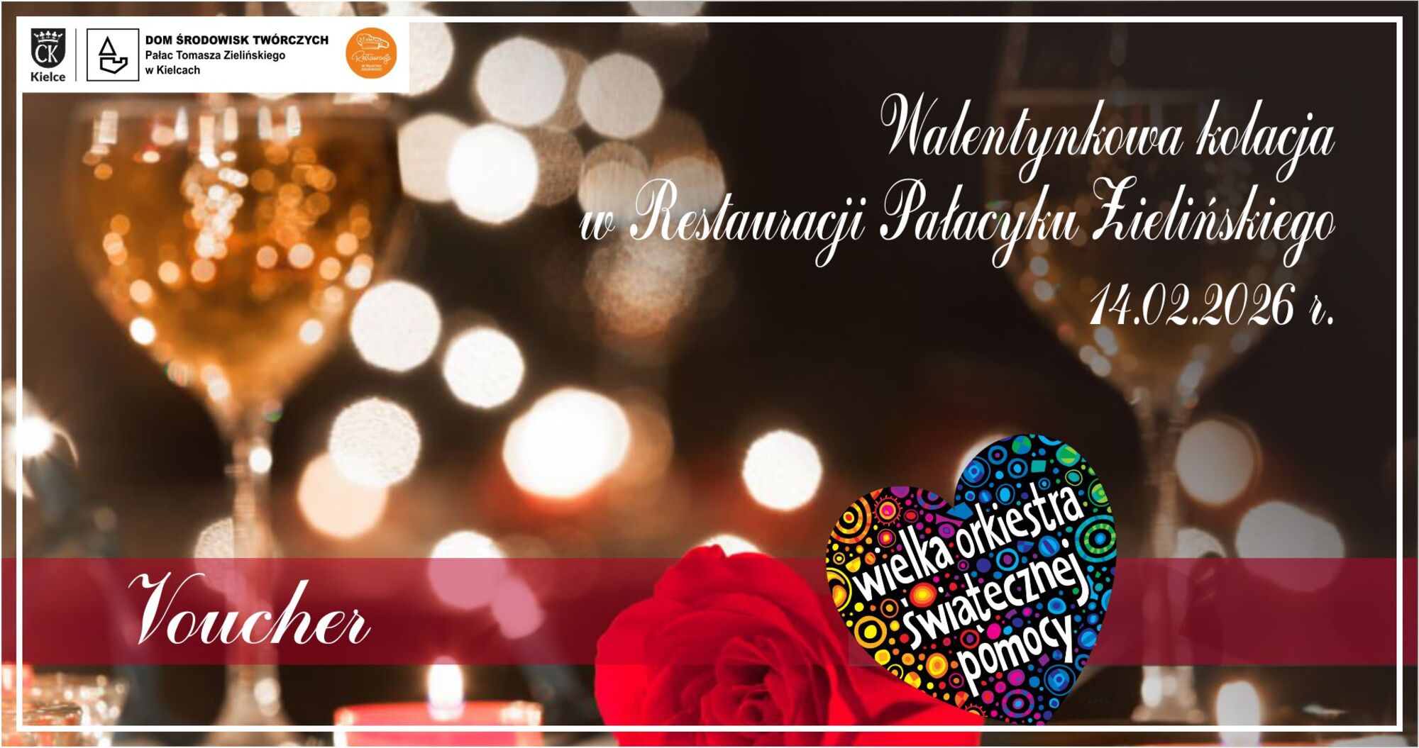 Voucher - Walentynkowa Kolacja w Pałacyku ZielińskiegoCena sprzedaży: 1 000.00 złIndeks: 44/26Numer na licytacji: 9Licytacja: 2026-01-25 17:00 - Dom Środowisk Twórczych Pałac T. Zielińskiego |