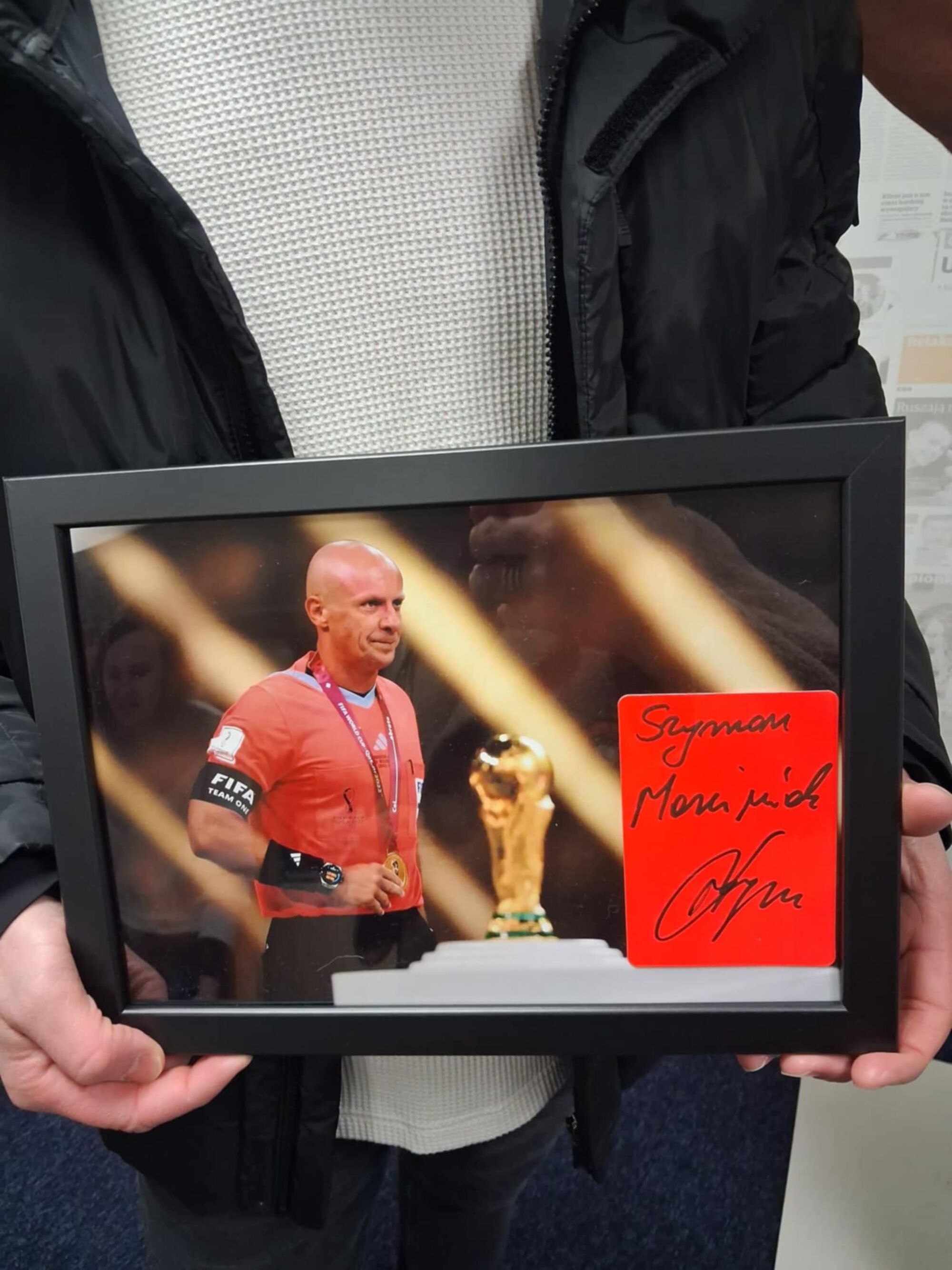 Czerwona kartka sędziowska z autografem Szymona MarciniakaCena sprzedaży: 450.00 złIndeks: 296/26Numer na licytacji: 93Licytacja: 2026-01-25 17:00 - Dom Środowisk Twórczych Pałac T. Zielińskiego |