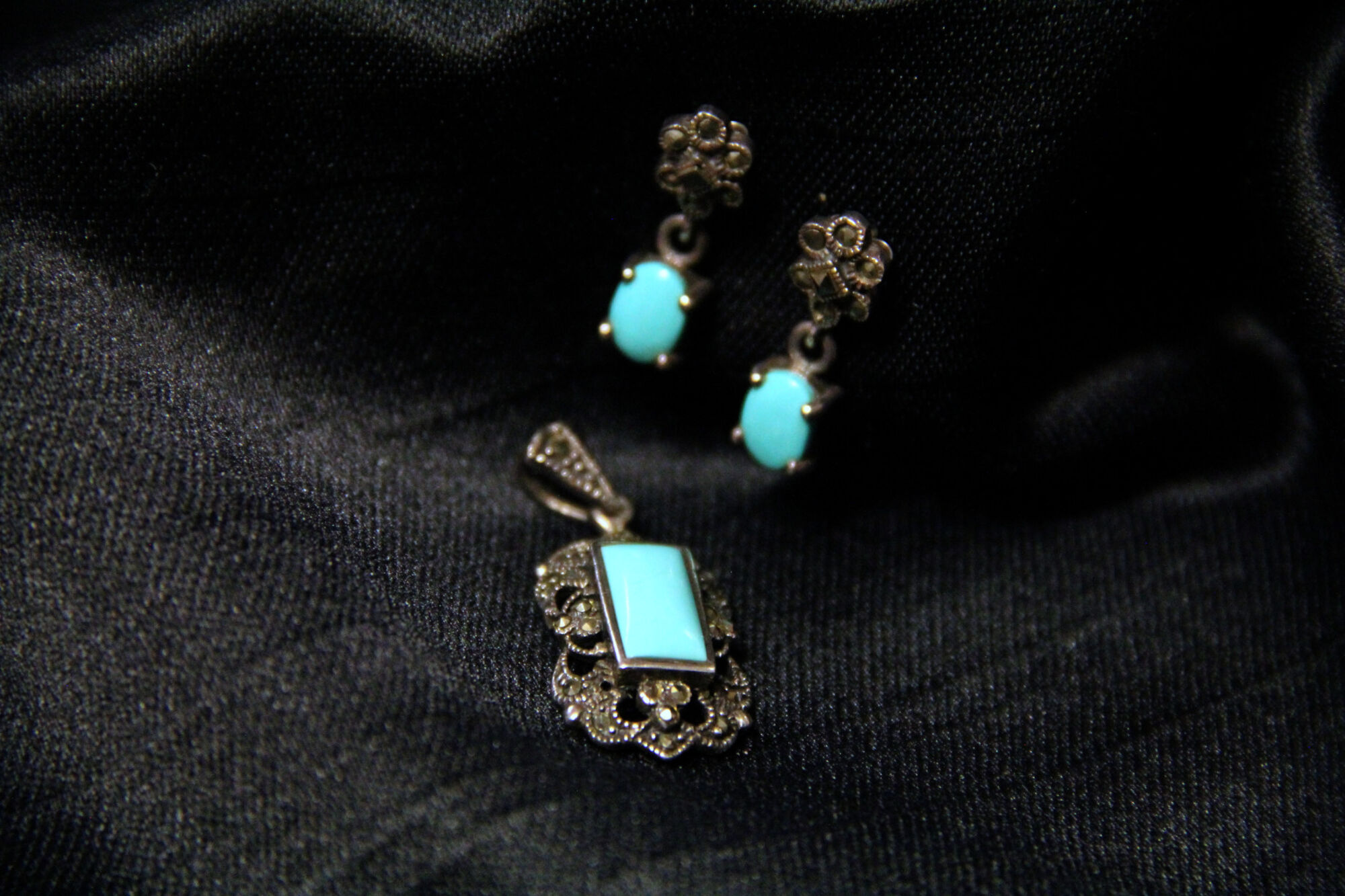 Srebrna biżuteria z markazytami i turkusamiCena sprzedaży: 150.00 złIndeks: 49/26Numer na licytacji: 14Licytacja: 2026-01-25 17:00 - Dom Środowisk Twórczych Pałac T. Zielińskiego |