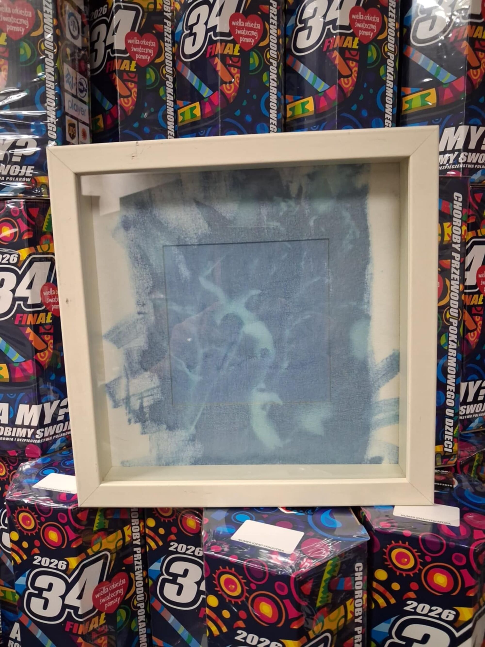 „Ogrody pamięci 2025” - cyjanotypia na jedwabiu naturalnym 25 x 25 cm – Monika CybulskaCena sprzedaży: 350.00 złIndeks: 21/26Numer na licytacji: 1Licytacja: 2026-01-25 17:00 - Dom Środowisk Twórczych Pałac T. Zielińskiego |