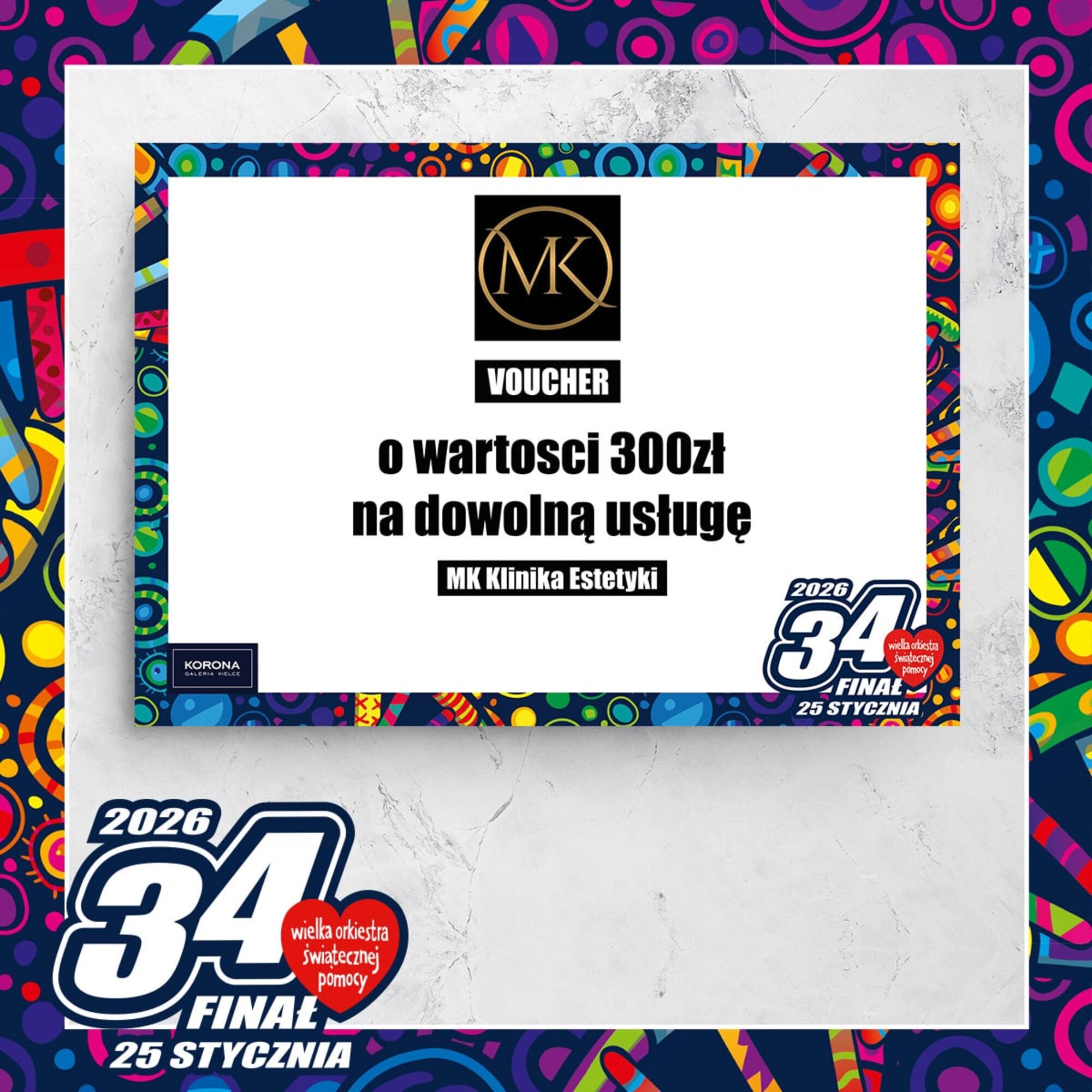 Bon 300 zł do MK Klinika EstetykiCena wywoławcza: 0.00 złIndeks: 173/26Numer na licytacji: 0Licytacja: 2026-01-25 10:00 - Galerie: ECHO i KORONA |