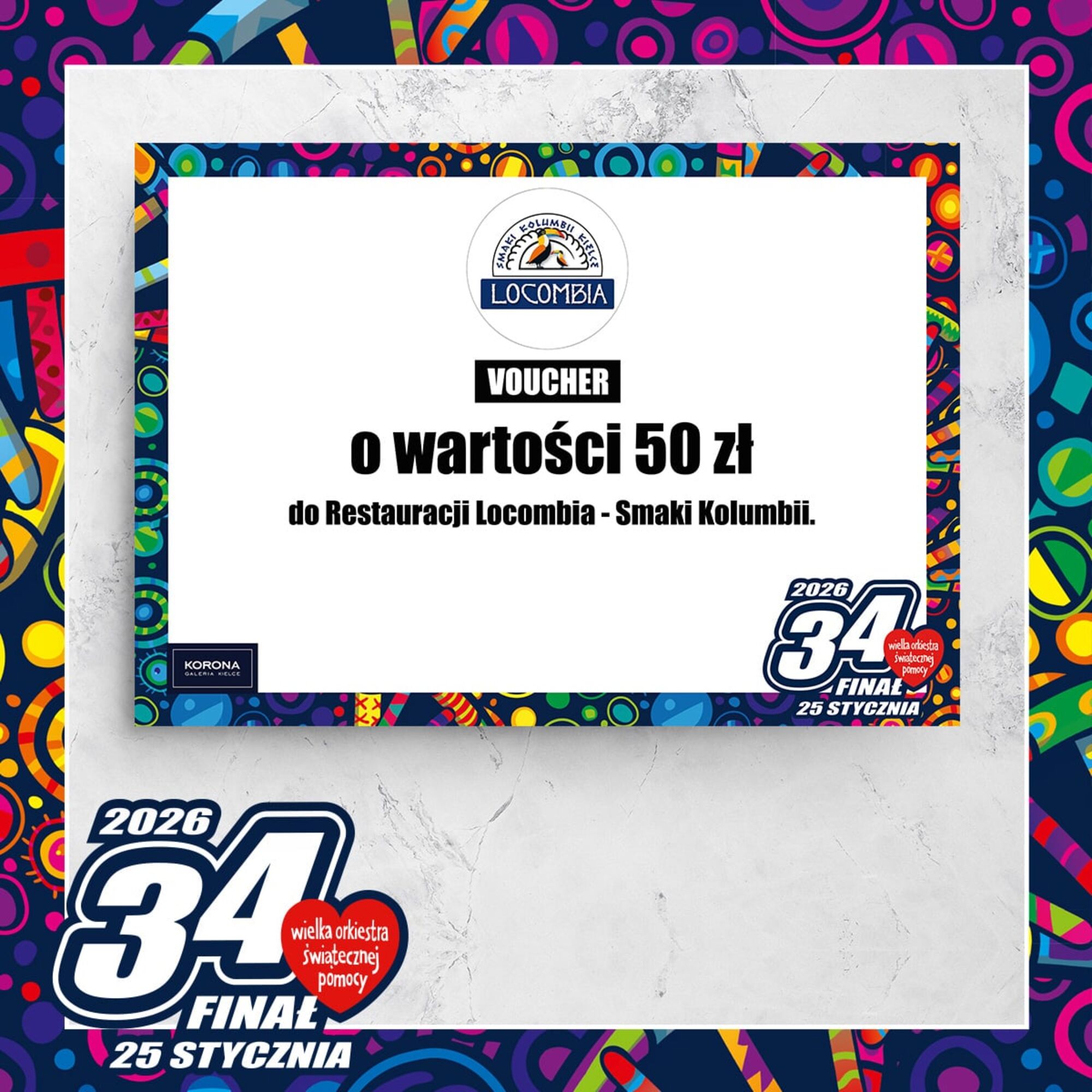 6 Voucherów po 50 zł od Locombia – Smaki KolumbiiCena wywoławcza: 0.00 złIndeks: 176/26Numer na licytacji: 0Licytacja: 2026-01-25 10:00 - Galerie: ECHO i KORONA |