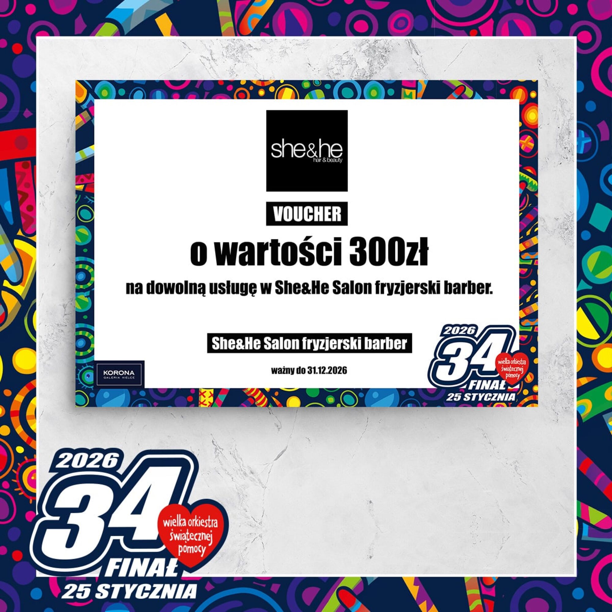 Voucher od She&He Salon Fryzjerski BarberCena wywoławcza: 0.00 złIndeks: 174/26Numer na licytacji: 0Licytacja: 2026-01-25 10:00 - Galerie: ECHO i KORONA |