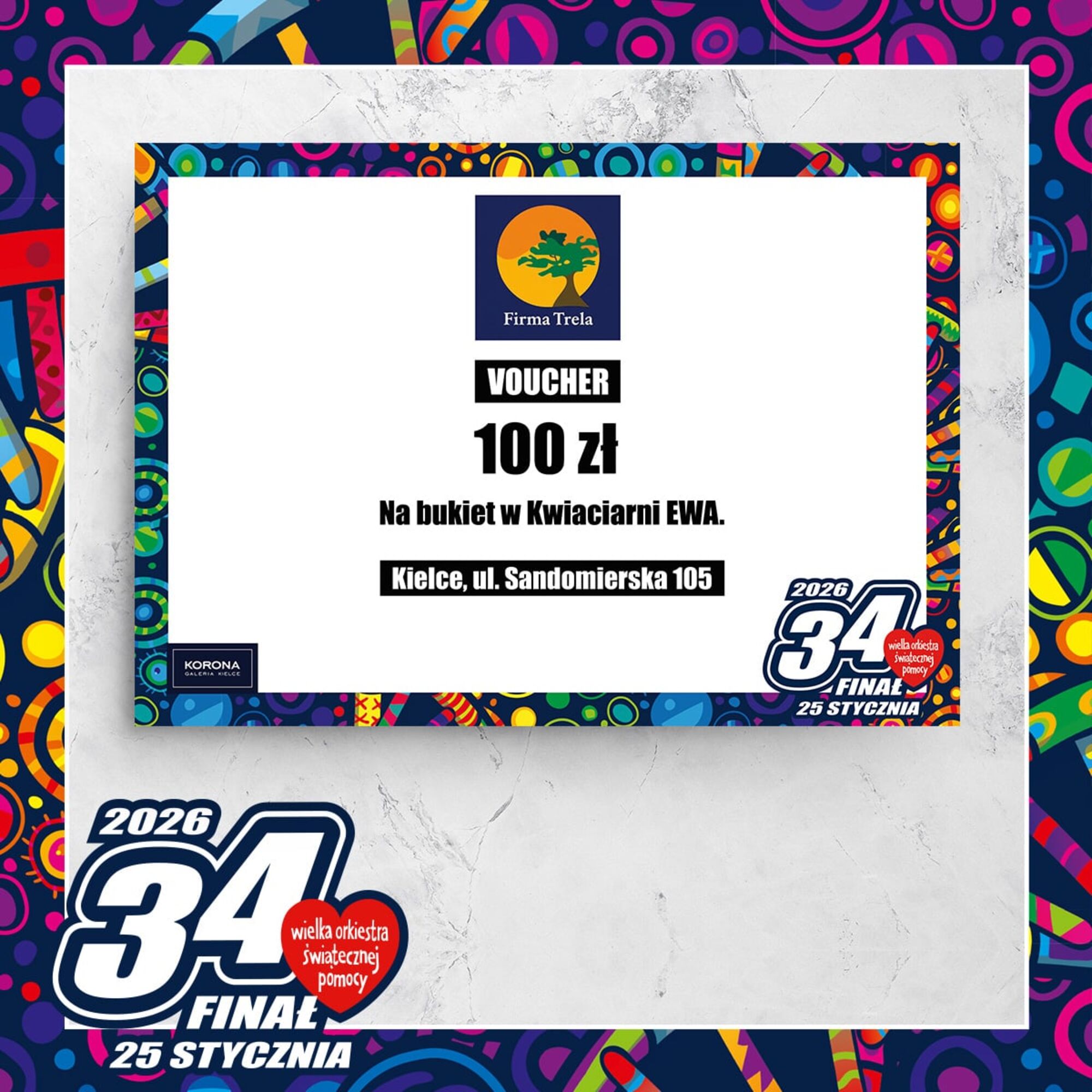 2 x Voucher 100 zł na bukiety kwiatów z kwiaciarni EwaCena wywoławcza: 0.00 złIndeks: 12/26Numer na licytacji: 0Licytacja: 2026-01-25 10:00 - Galerie: ECHO i KORONA |
