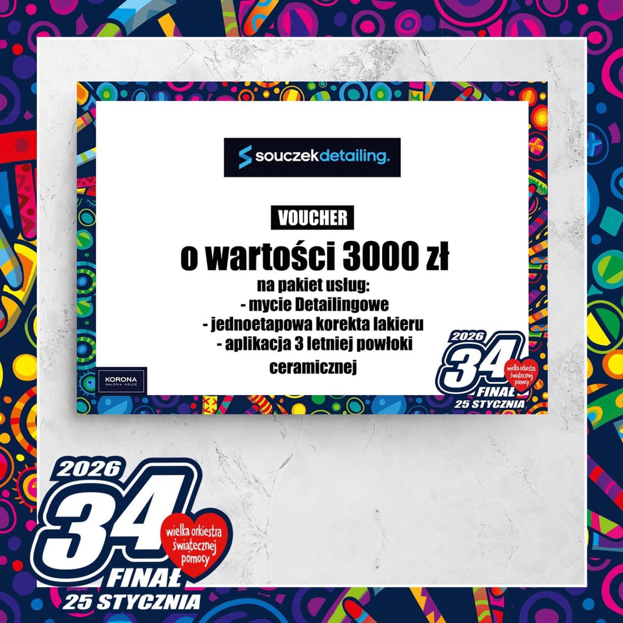 Pakiet usług o wartości 3.000 zł od SOUCZEK DETALINGCena wywoławcza: 0.00 złIndeks: 178/26Numer na licytacji: 0Licytacja: 2026-01-25 10:00 - Galerie: ECHO i KORONA |